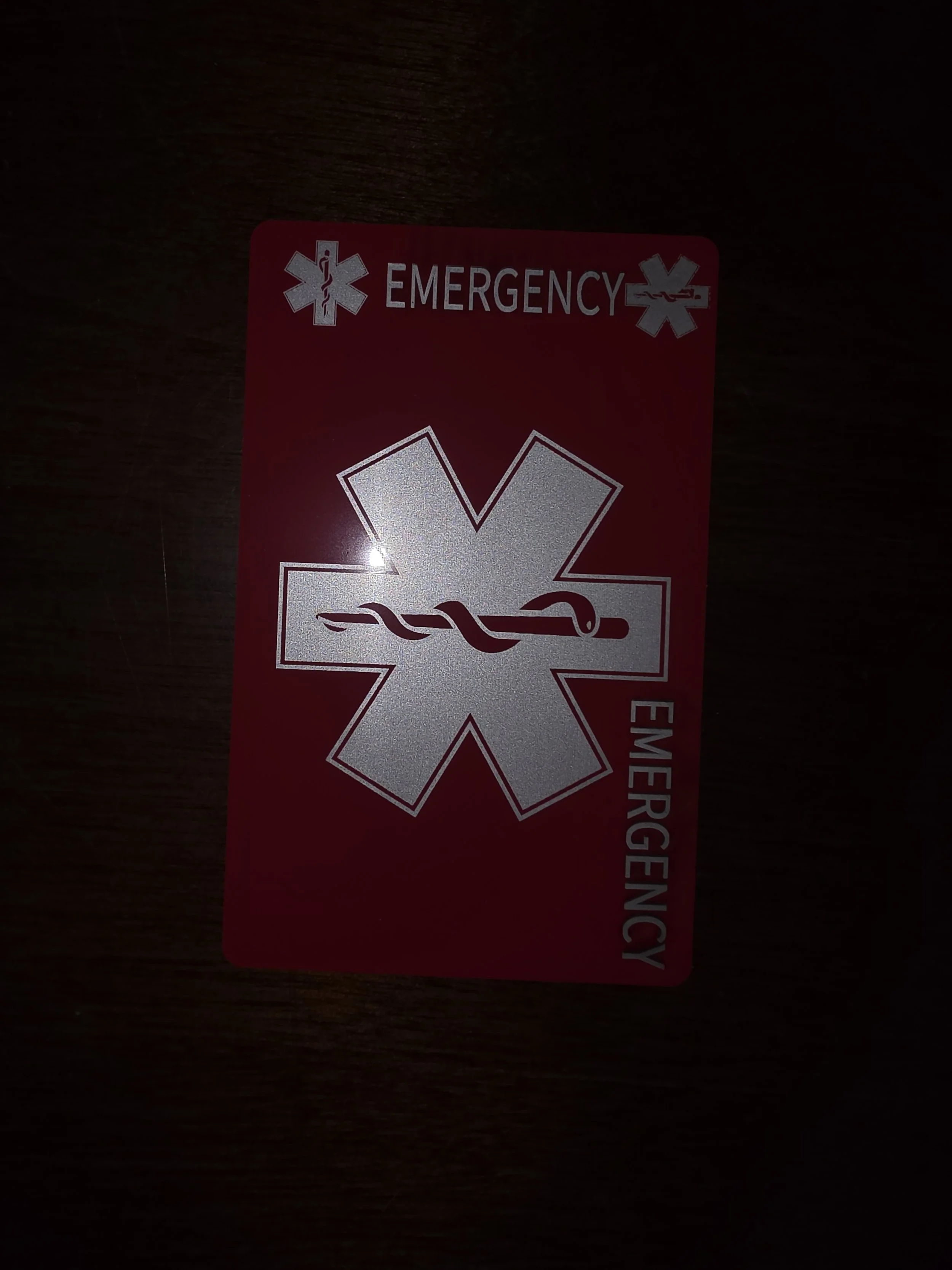 Stay prepared with this durable and highly visible anodized aluminum emergency tag and card set—designed for quick identification and critical information access when it matters most.